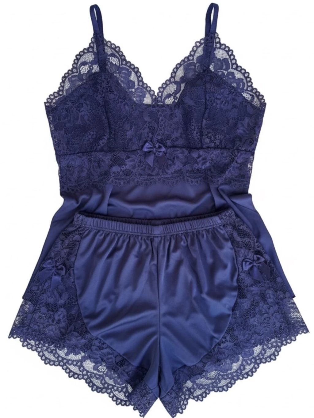 Design sofisticado: renda no busto e costas, short com renda, laço em cetim e cintura em elástico confortável