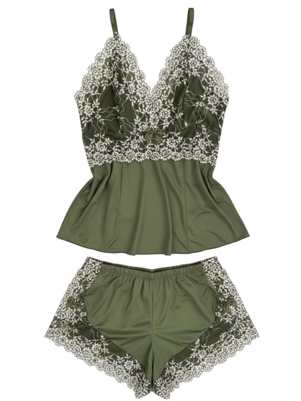 💖 Transforme suas noites com o Baby Doll Verde Militar com Branco e sinta-se confiante e elegante!