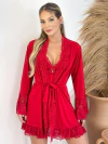 💖 Transforme suas noites com o Baby Doll Vermelho com Preto Chantilly e sinta-se envolvente, elegante e irresistível!