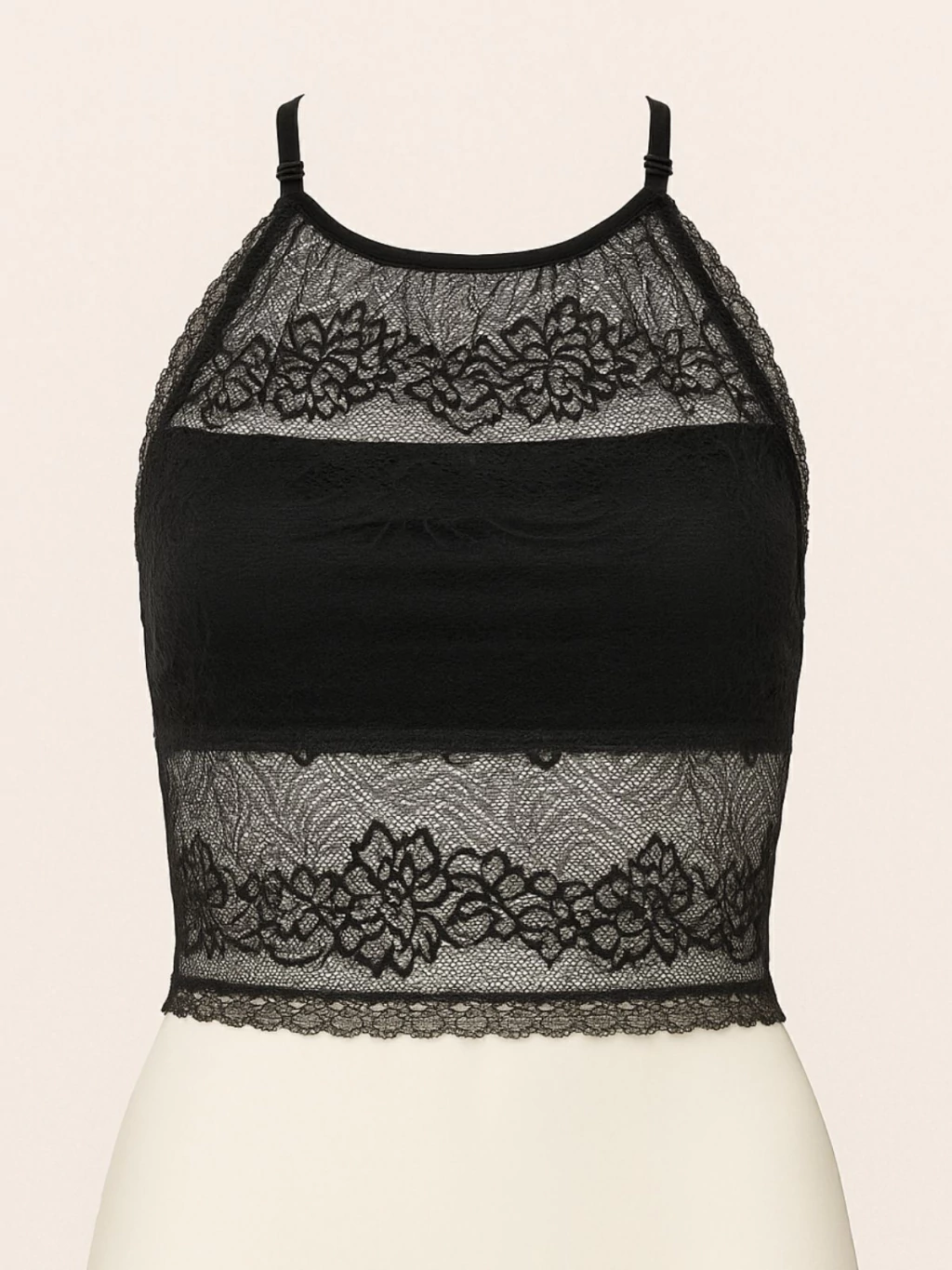 Cropped Todo em Renda: Modelagem sem bojo, confeccionada em renda macia e detalhada, que valoriza o corpo com conforto e elegância.